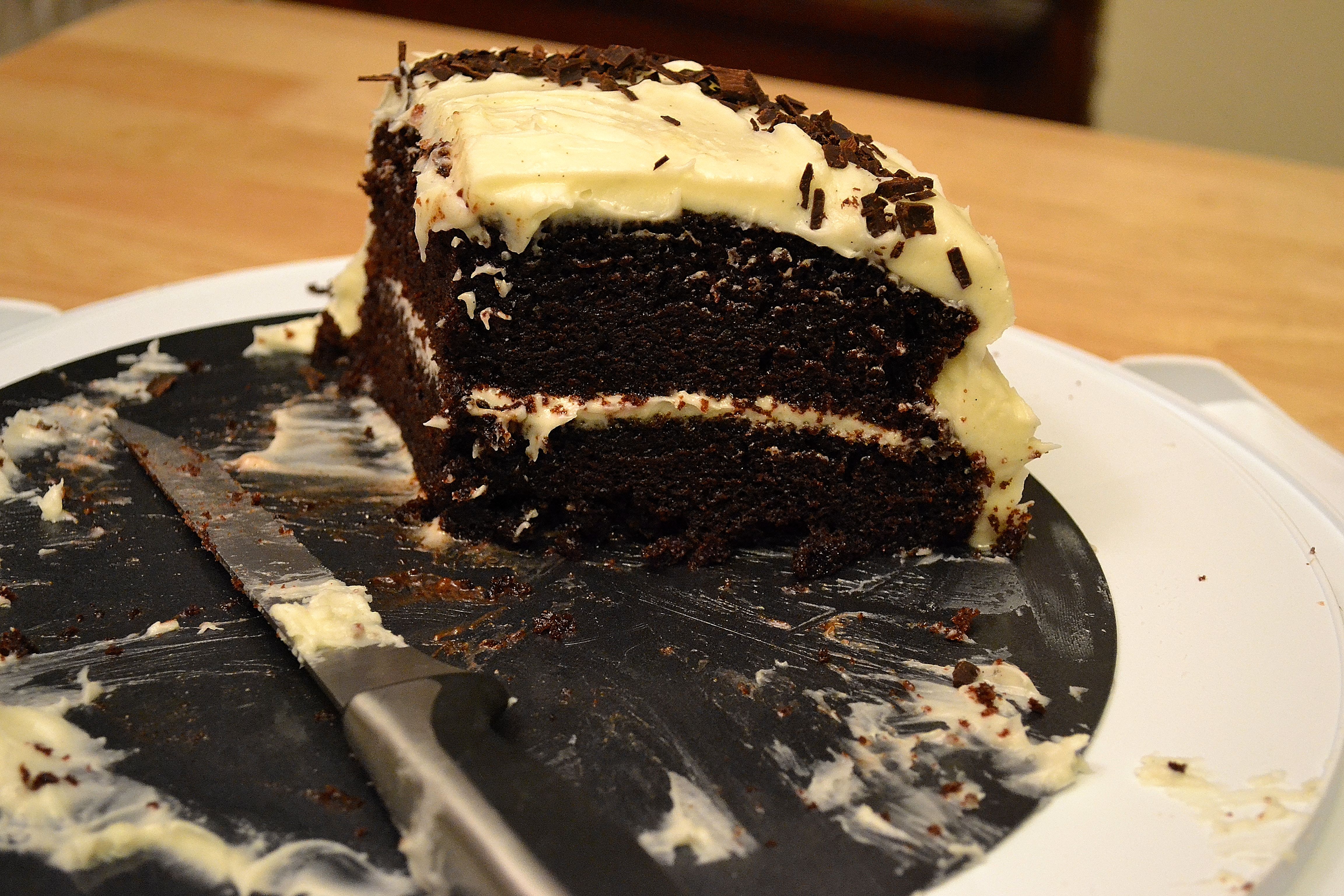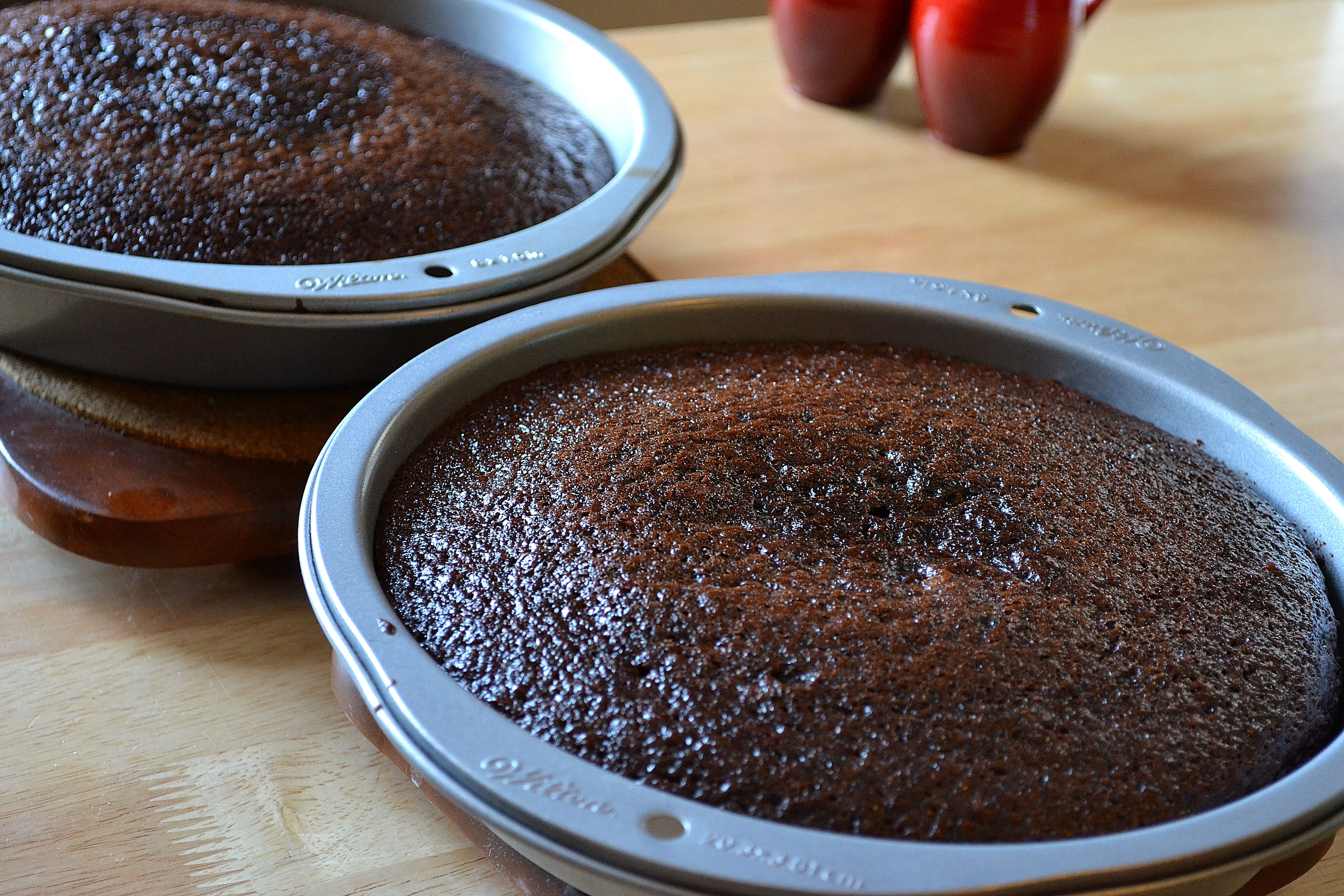 Now you’re probably dying to know my all-time favorite recipe, but that will have to wait for a later post (it’s too special for a simple shout-out). This is a RICH cake – the velvety texture comes from a cup of sour cream (making it necessary to finding a creative use for the rest of the 16 oz carton I had to buy – referred to in my previous post) and Dutch Process cocoa. Natural unsweetened cocoa powder was all I had used in baking for years, yet this recipe compelled me to do my research. Natural cocoa is untreated, ground cocoa powder – its bitter taste provides a depth of flavor that is ideal for brownies and cookies. Dutch Process, on the other hand, has a far more subtle taste as it has been treated with an alkali (often a potassium solution) to offset its acidity; this neutralization also imparts a darker hue on the powder, making it an ideal cocoa for darker cakes. Many people prefer the taste of Dutch Process, believing natural cocoa imparts a tangible acerbity on cakes. It is safe to substitute natural cocoa for Dutch Process, but not the other way around.*