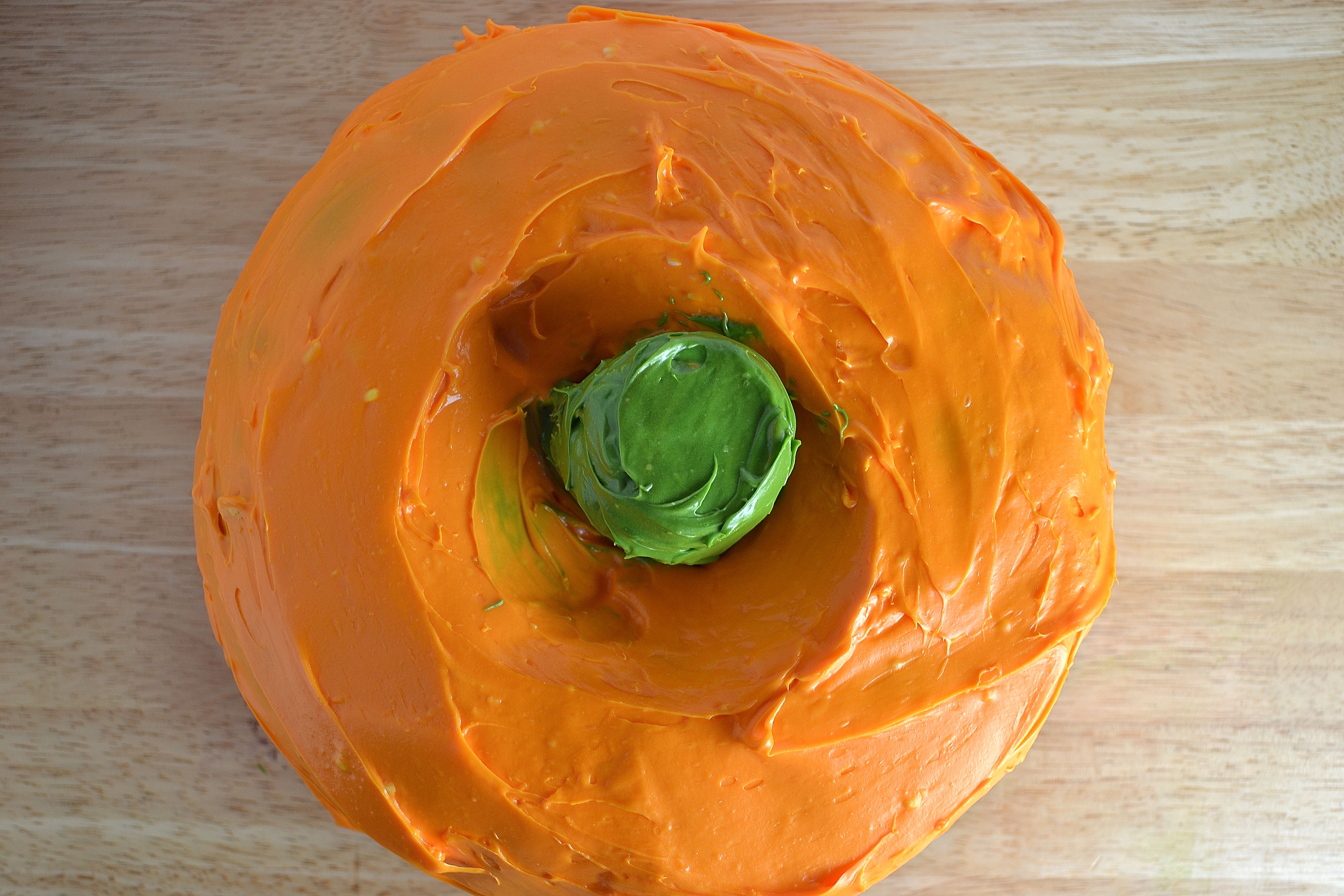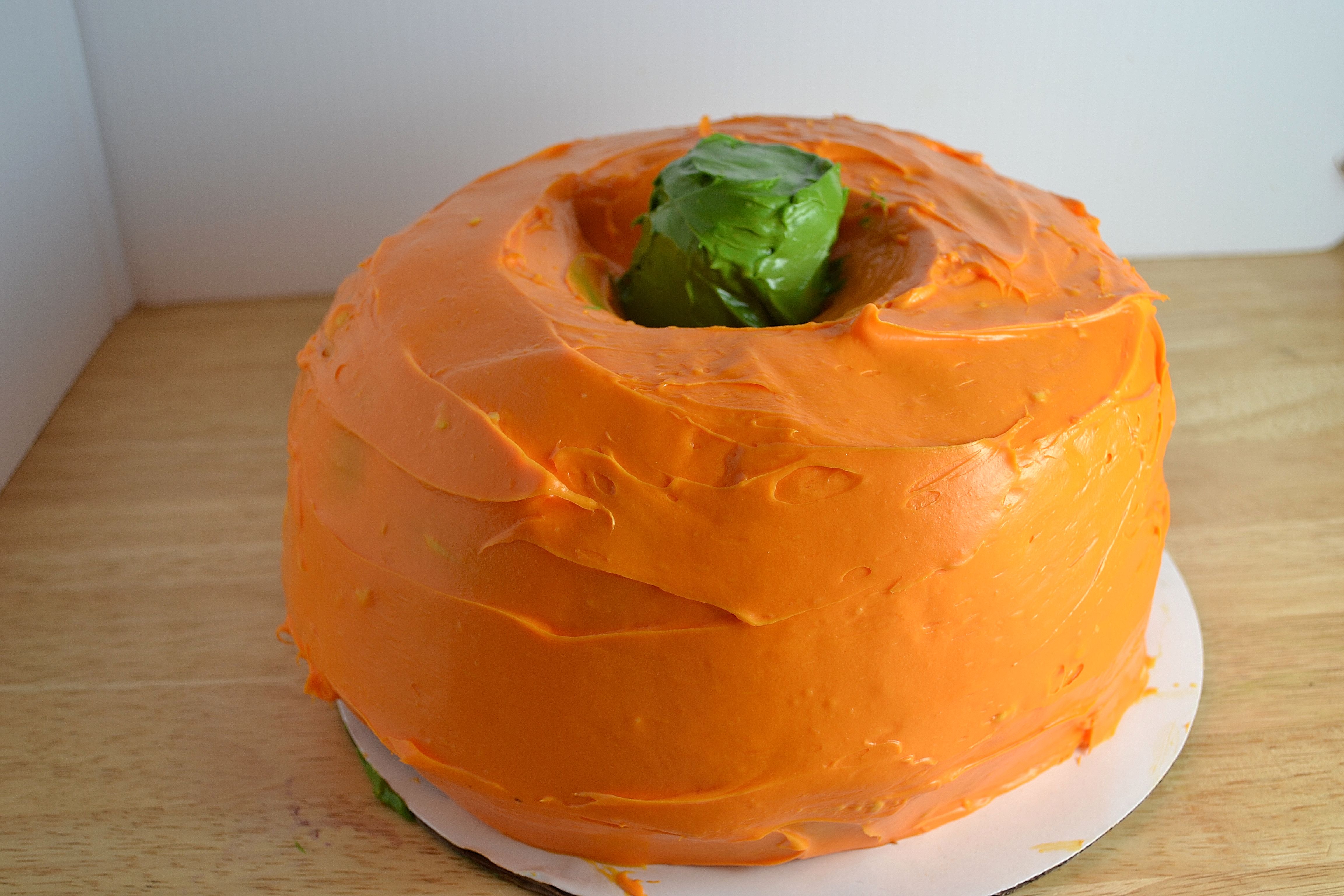 The pumpkin: a beloved tradition of Fall, appearing in everything from homemade pies to front doorsteps as Jack-O-Lanterns. Nothing quite speaks to the “flavor” of the season like this beloved squash. Both its aesthetic appearance and familiar taste have defined a number of traditions. So when I discovered that I would be baking a cake for my office on Halloween itself, I couldn’t resist finding a way to combine these two qualities. I ended up creating this (Literal) Pumpkin Cake with Cream Cheese Frosting.