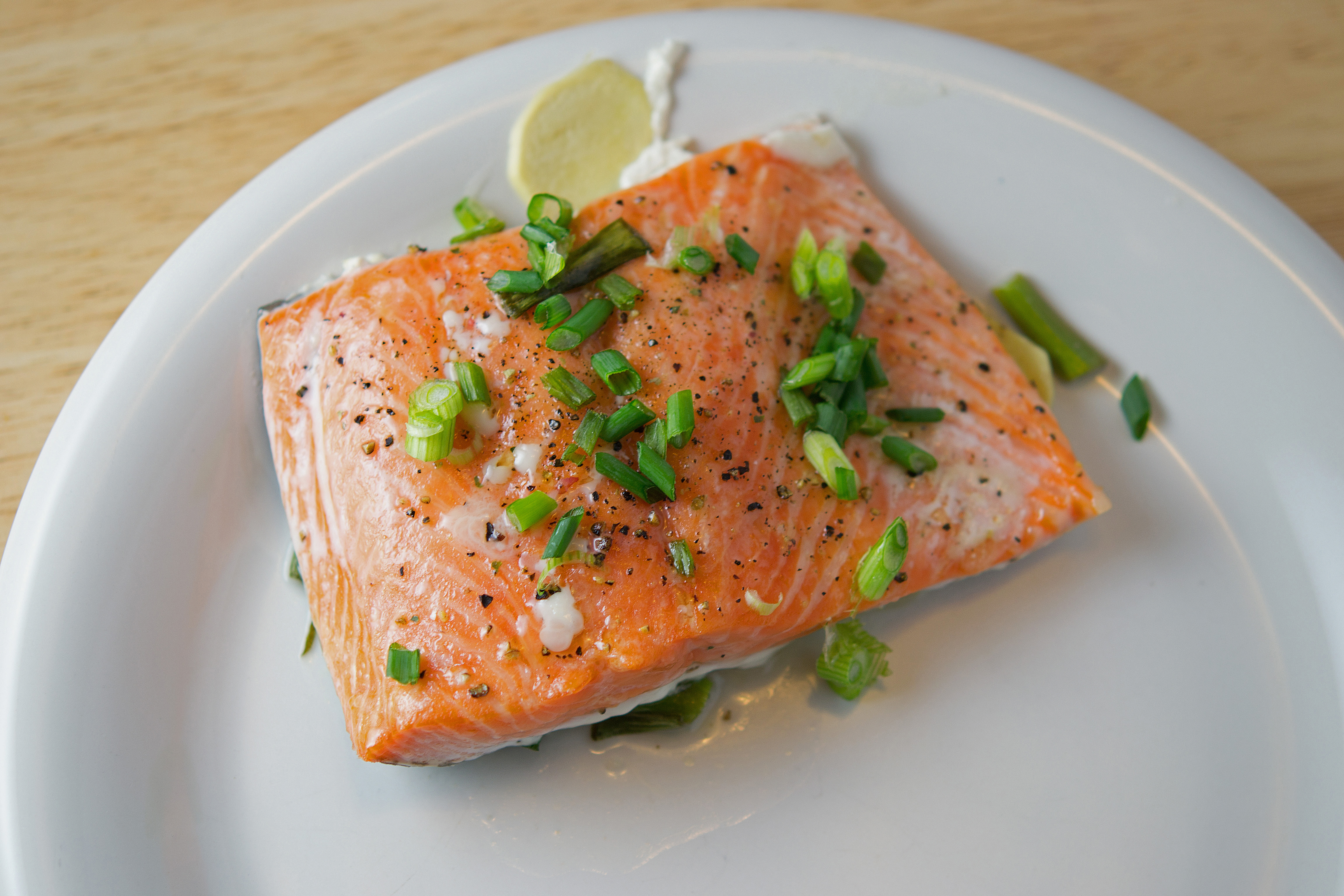 Salmon: an established icon in the realm of health foods, that has yet to lose momentum. A single 4-oz serving boasts skyrocketing levels of vitamins D and B12, in addition to being a excellent source of protein and omega-3 fatty acids. The problem? Overcooking – the luscious, tender filets we often enjoy in our favorite dining establishments often translate into a dry, chalky entree in our homemade attempts. Sure, you can dredge it in a glaze or sauce, but then why bother spending so much on salmon in the first place? That’s why this method will change your life – trust me, you’ll never look back once you’ve tried Slow Cooked Salmon.