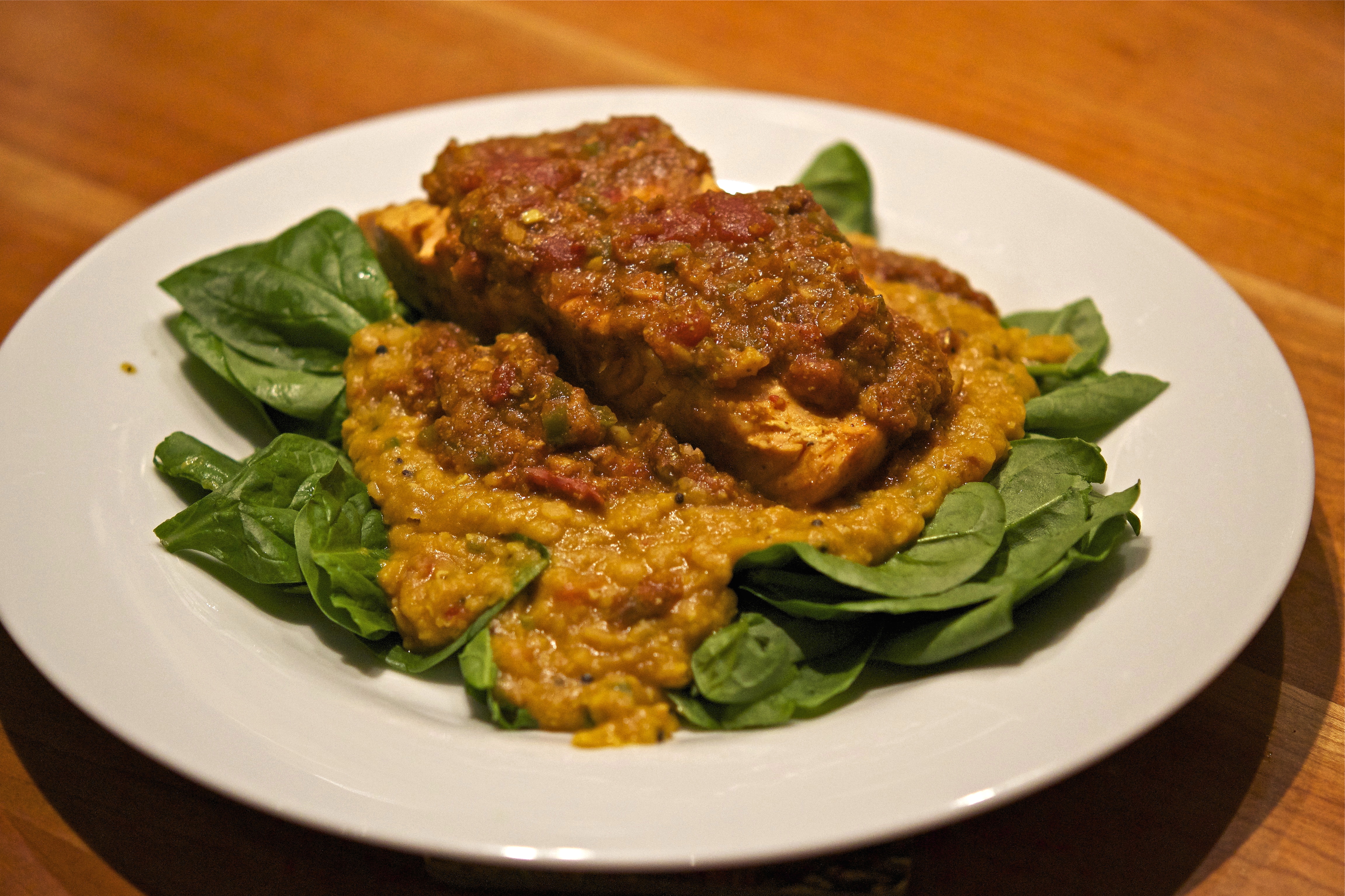The nut crust is the “crown jewel” of the dish – and fairly easy to make. You can use almost any medley of nuts, but the pine nut / pistachio combination is quite delicious. What’s even better is you can make the nut crust the day before (in fact, you can prepare this whole recipe in advance, with the exception of the fish). The original recipe calls for halibut, but our local market had a good sale for Chilean sea bass. In case neither is available, any flaky white fish will do the trick. You can bake or broil the fish, whichever works best based on your oven. Click HERE to see the recipe for this beautiful main course.