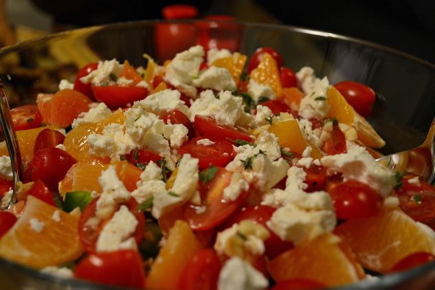 ◊ Arugula Salad with Oranges, Tomatoes & Goat Cheese tossed in a Red Wine Vinaigrette