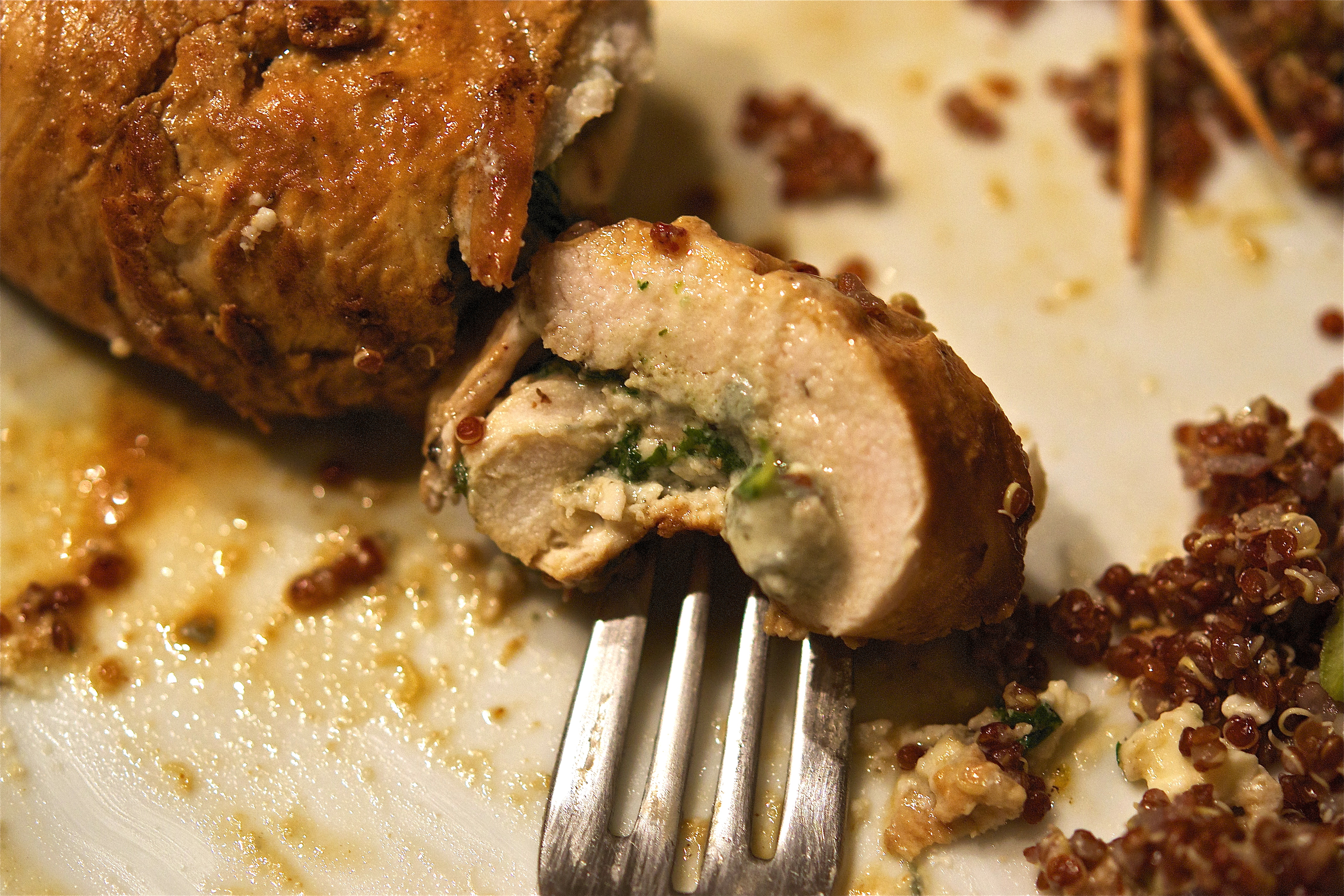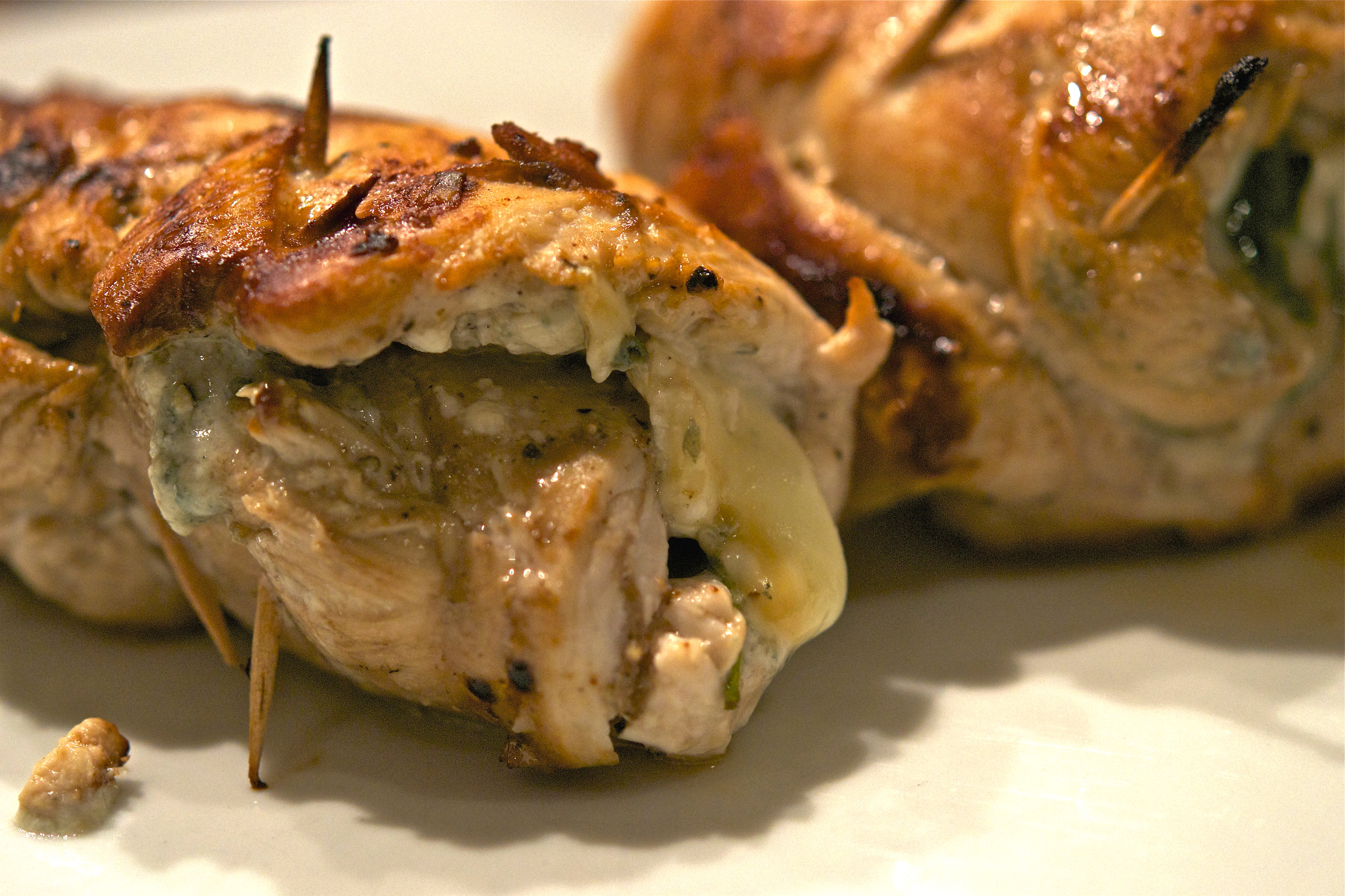 You know the old adage “tastes just like chicken?” Well, if you’ve been eating as much chicken as I have, the taste of chicken becomes just that: a flavor as unique as grass. Your daily cognizance of its presence reaches the point of tedium. Chicken is wonderful, don’t get me wrong – yet the “lean protein” and “cross-cultural” accolades lose their luster after the 10th meal you’ve had with chicken…similar to hearing Vivaldi’s Spring for the umpteenth time. So here I was again, facing the inevitable task of creating a chicken dinner that didn’t taste like chicken. I went for the easy win, and chose the one thing that makes any meal beautiful – a pungent, fatty hunk of cheese. And I daresay these Blue Cheese Chicken Roulades were to DIE for! Not to gross you out, but blue cheese is quite literally a “molded” cheese – it has been infused with Penicillum (yup, it’s the same genus that produces the antibiotic) to create those distinctive blue “spots”. It’s this addition that gives the cheese such fabulous depth – a salty, sharp taste that pairs well with honey and fruit (apples or pears especially). Like many a wonderful invention, blue cheese was a total accident – cheeses being stored in caves started to develop mold under the humid circumstances, and yet the flavor was a surprisingly welcome deviation from the original….WHY they ate the moldy cheese in the first place beats me, but I’m thankful they did. This is one of those recipes that looks more difficult than it actually is…well, you might accidentally prick yourself with a toothpick, but it’s a minor threat for such an irresistible result. The trick is to soak the toothpicks for 30 minutes at least, so they are “heatproof” and won’t splinter easily. We decided to include spinach as an afterthought, but it was more for color than anything else. Basil would have been too overpowering, and any other green would defeat the purpose. These roulades are the paragon of “comfort food” – no frilly sauces or special seasonings, just cheese doing what it does best: MELT. A castiron pan is best for this recipe, but any ovenproof skillet will do (or you can simply transfer the chicken to a baking pan post-searing…but then you lose all of those glorious pan juices!) Warning – you might attack your friend so that you can have his/her share…don’t say I didn’t warn you 😉 Click HERE to read more about this sinful recipe. “Nutritional” and “daring” rarely define comfort food – this is a genre whose sole intention is to portray the joy of eating, a pleasure that is by no means a triviality. The goal is analogous to the philosophy of many a French composer during the 20th century. Conveying pleasure through art was a priority, as Debussy famously describes: