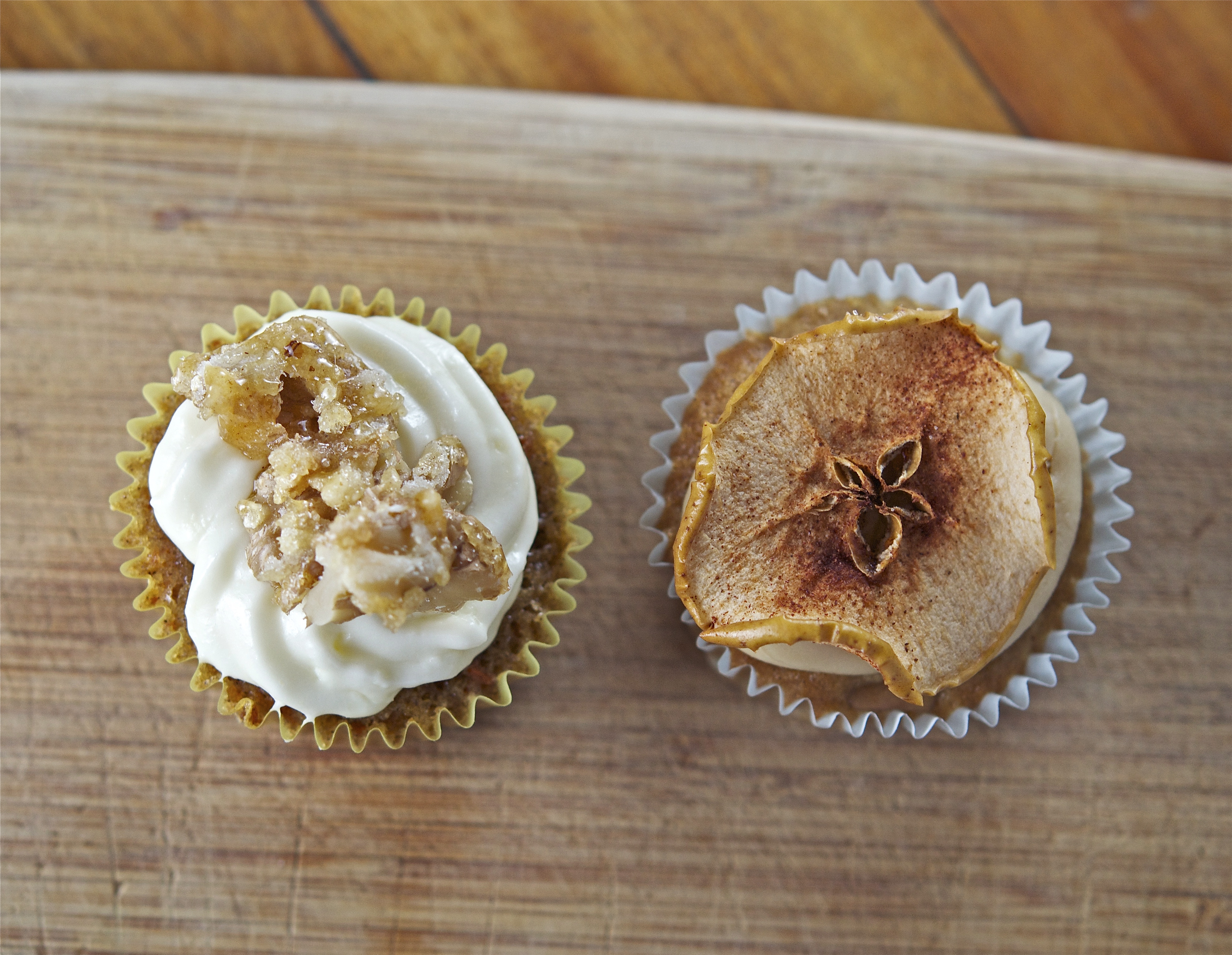 I am often asked if cooking is what I do for a living – there have certainly been times that the thought has crossed my mind, from throwing a pitch to FoodNetwork on behalf of Classical Kitchen (I would be an awful TV chef, in all honesty) to opening a small hole-in-the-wall bakery with organic everything. But the reminders as to why I do this simply for the love of cooking are endless – my dear friend Kate Lemmon’s flute recital was one of those reminders. Kate had asked me to bake “Fall-themed” cupcakes for the event – I spent the entire day prepping, baking and decorating. By the time I arrived at the concert hall, I was exhausted and covered in powdered sugar…but then Kate performed one of THE best recitals I’ve heard and was practically glowing by the end. Moments like these are why I could never do this for anything but my friends. So for Kate, I ended up making Carrot Cupcakes with Maple Cream Cheese Frosting & Walnut Praline and Apple Spice Cupcakes with Salted Caramel Frosting. Kate had originally asked me to bake pumpkin cupcakes…yet as proven by this post, I’d already had my fill of pumpkin. I was wavering between several recipes when I remembered carrot cake: that one dessert that people rarely see in cupcake form, and yet it is perfect in this context! I purchased carrots that were pre-shredded, and further diced them in a food processor…you are welcome to do this by hand if you so wish (and have the time). My only recommendation is to make the pieces as small as possible, as this is what makes or breaks the texture. For this recipe, I’d have to say the walnut praline was the most difficult step…I burned myself more than once, which was my own fault on all counts (patience is a virtue, especially when dealing with boiling sugar). I actually double-candied the walnuts to give them an extra oomph of sweetness. And that frosting…good lord was it amazing! All together, the resulting cupcakes were adorable, and they were devoured by a crowd of hungry hippos (aka musicians, and we LOVE food) – click HERE to see the recipe for this gorgeous cupcake! Cinnamon and apples are the epitome of fall-like flavors in New England – orchards are EVERYWHERE, and they all offer some type of delicious baked good doused in cinnamon. So for me, it was a no-brainer to go with an apple spice cupcake. The garnish was a last-minute touch – I didn’t have time to make caramel for a drizzled effect, and needed something to top the frosting. I remembered the success of this cupcake, and thought an apple garnish would be equally as loved. These apple chips took almost 3 hours to make, so I would suggest starting with the garnish and then baking the cupcakes…so you don’t pull an Anne and just barely finish these decorations in time! What I like most about these cupcakes was the visual aesthetic – they were both cute and rustic, which may seem antithetical, but the two work quite well in tandem. The batter had noticeable apple pieces, which gave the texture a moist crumb. The winner was the salted caramel frosting, which proves that there is nothing wrong with adding a little salt to your sweet. Click HERE to see the recipe! The best part of the night was handing Kate a plate full of both cupcakes after her recital – she was ecstatic, which made all of that hard work completely worthwhile.