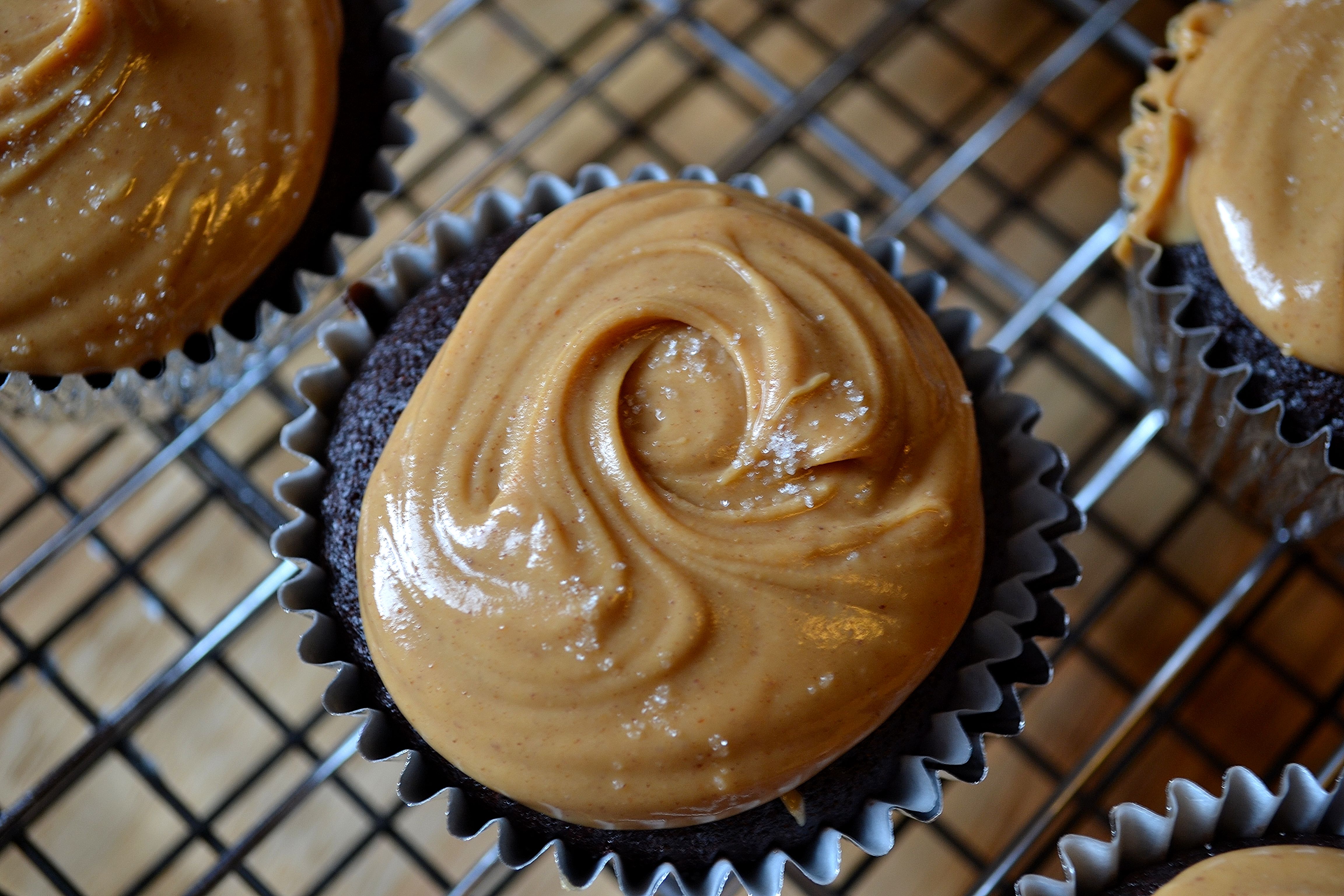 VEGAN CHOCOLATE CUPCAKES with HONEY-PEANUT BUTTER SPREAD