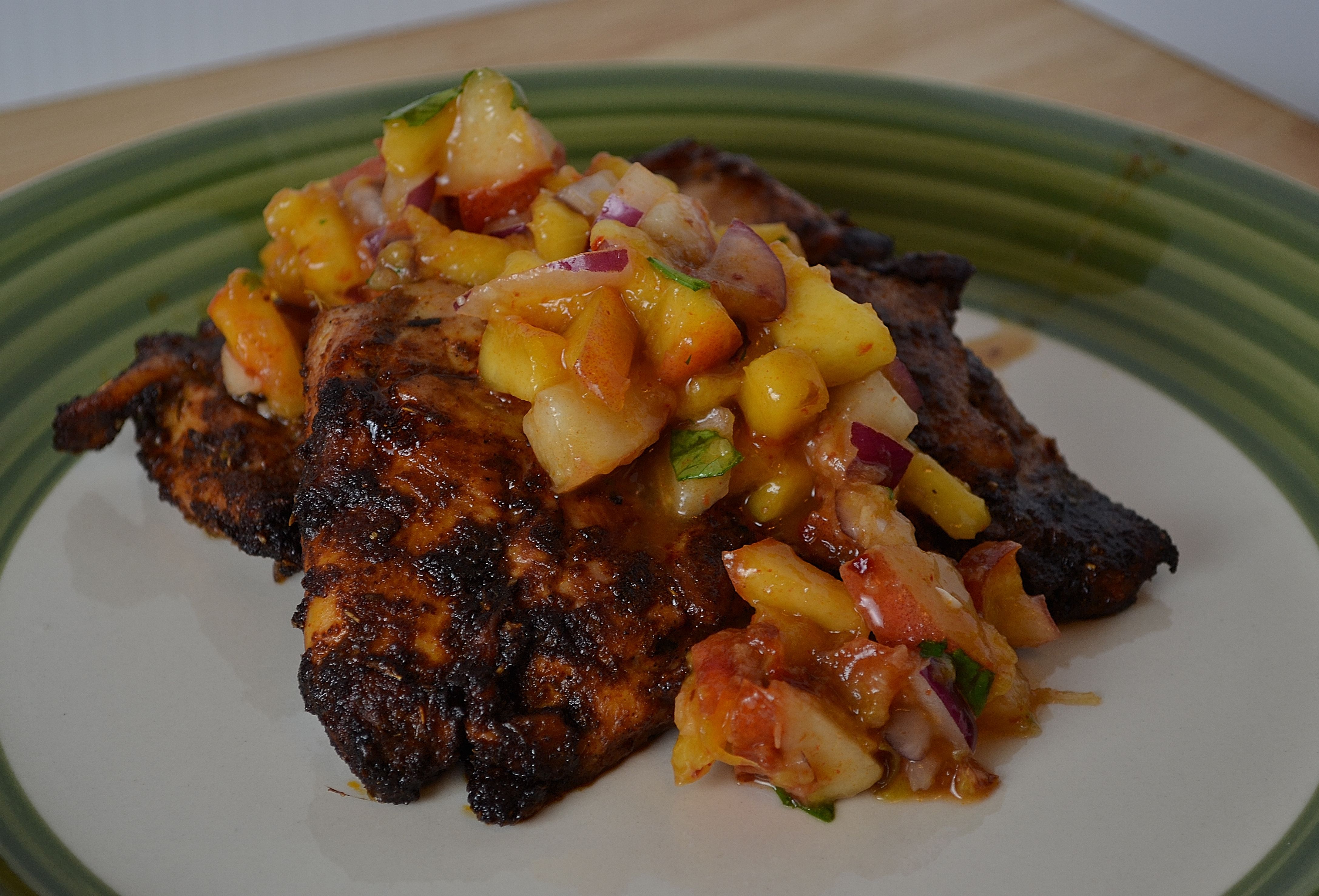 ANCHO CHICKEN THIGHS with CHIPOTLE-PEACH SALSA